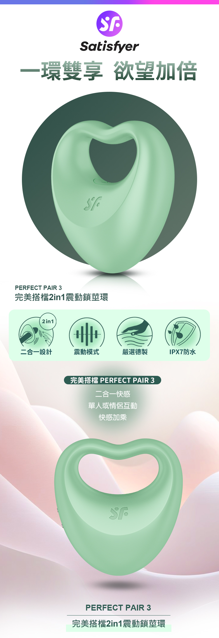 品名:Satisfyer|Perfect Pair 3|完美搭檔 陰莖環震動器 綠